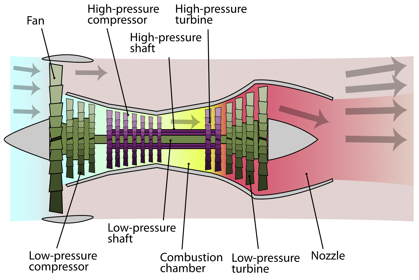Here’s the surprising part. It might seem silly to waste all that bypass air. However, most of the thrust in a modern turbofan (80% - 90%) comes from the bypass flow, not the exhaust jet from the core. That big fan at the front is what creates the bypass flow and hence most of the engine’s thrust.